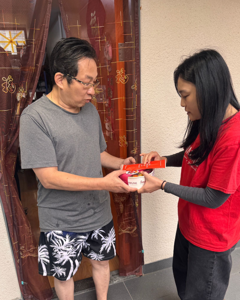 On the first day of Lunar New Year, the I’MMUNE team, under the motto “Warm care, healthy together,” went into the community to deliver comforting and nutritious meals to disaster-affected residents. The initiative specifically covered temporary accommodations supported by the Red Cross, as well as two Lutheran transitional housing sites, Seven Stars Court and Pisces Court, serving families and elderly residents who had lost their homes and were awaiting rebuilding or relocation. The team coordinated with relevant agencies in advance and prepared balanced meal boxes based on recipients’ choices, paying attention to both calories and nutrients and offering vegetarian and low-sodium options to ensure elderly people and those with chronic conditions could eat safely. At the distribution sites, volunteers did more than hand out meals — they chatted with residents to learn about their needs and shared information on community resources and follow-up support, so the care extended beyond a single meal. I’MMUNE will continue partnering with relief and social service organizations to expand its reach and to stand with the community during festivals and difficult times.
