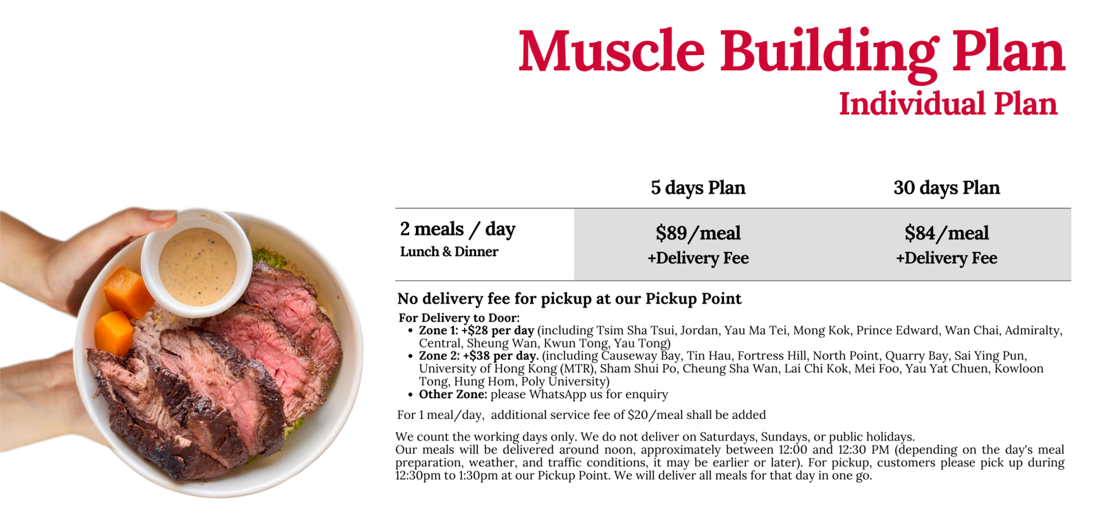 Muscle building meal plan Hong Kong, high protein diet meal plan, healthy meal delivery for gym, best meal prep service in HK, post-workout meals, muscle gain food delivery, sports nutrition meals, clean eating muscle gain